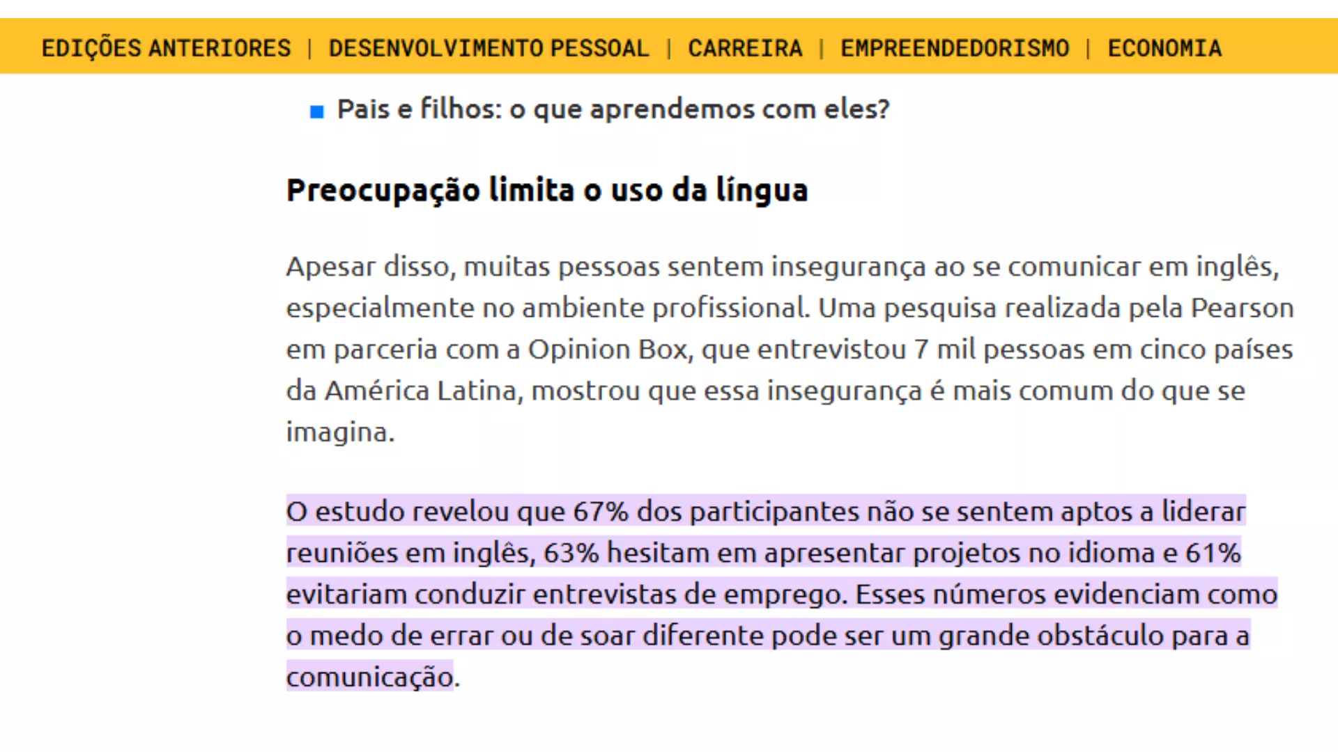Sabe o que quer dizer, mas tem medo de errar, de ser corrigido ou de parecer “esquisito” falando com outras pessoas, principalmente nativos.