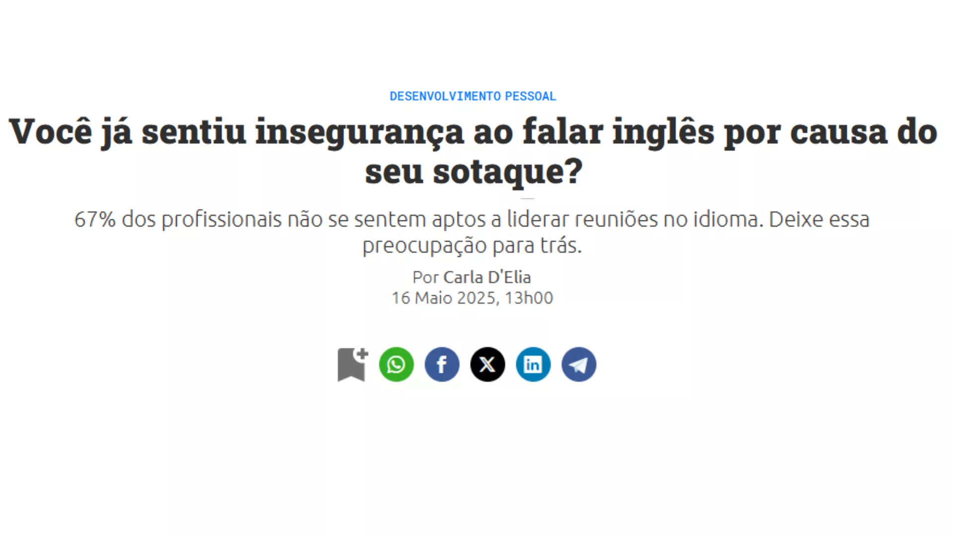 Mesmo sabendo o conteúdo, a sua voz em inglês não te representa. Parece robótico, travado, e isso te faz evitar conversas importantes.